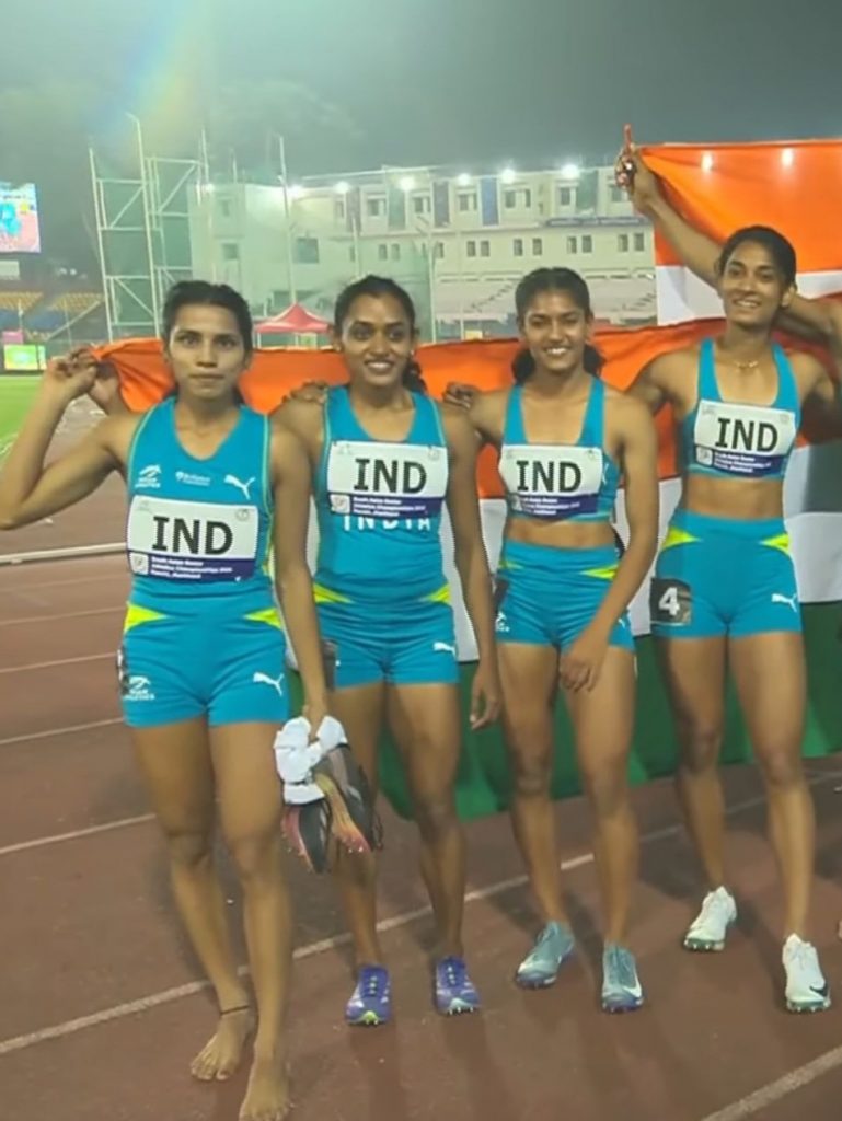 सत्यवीर धनखड फरीदाबाद मीडिया प्रभारी खेल ने जानकारी देते हुए बताया कि 4 गुणा 100 मीटर रिले रेस में भारतीय एथलीट धाविकाओं ने तमन्ना जींद हरियाणा,सुदेशना शिवांकर,जिलना एम वी और साक्षी चौहान की टीम ने रजत पदक जीता और स्वर्ण पदक श्रीलंका टीम ने एवं कांस्य पदक मालदीव की टीम को मिला।