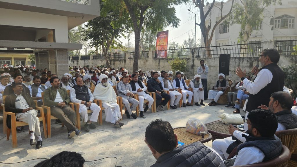 नूंह | वोट चोर गद्दी छोड़ महारैली को लेकर हरियाणा कांग्रेस पूरे एक्शन मोड में नज़र आ रही है, दक्षिण हरियाणा के नूंह जिले से कांग्रेस विधायक चौधरी आफताब अहमद ने गुरुवार को जिला मुख्यालय नूंह पर अपने निवास पर बैठक का आयोजन किया। बैठक में कांग्रेस कार्यकर्ता हजारों की संख्या में पहुंचे थे, इस दौरान पीसीसी सदस्य चौधरी महताब अहमद विशेष रूप से मौजूद रहे। बैठक में 14 दिसंबर को दिल्ली में होने वाली महारैली के लिए विधायक आफताब अहमद ने कार्यकर्ताओं को जिम्मेदारी सौंपी, अकेले नूंह विधानसभा से 5000 कांग्रेसी दिल्ली रवाना होने का अनुमान है।