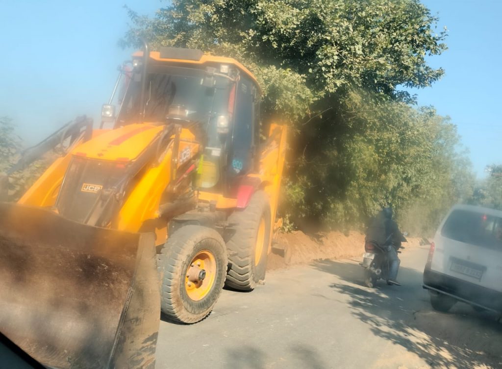 कनीना-कनीना-महेंद्रगढ़ मुख्य मार्ग से गुढा सड़क मार्ग चौड़ीकरण का कार्य करती जेसीबी।