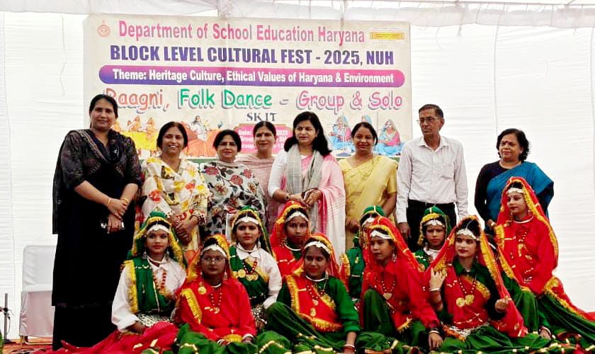 नूंह | हरियाणा शिक्षा विभाग, पंचकूला के दिशा-निर्देशानुसार जिले के सभी पांच खंडों में कल्चरल फेस्ट का आयोजन बड़े उत्साह और पारंपरिक धूमधाम के साथ किया गया। इस आयोजन का उद्देश्य विद्यार्थियों में हरियाणवी धरोहर, संस्कृति, नैतिक मूल्यों एवं पर्यावरण संरक्षण के प्रति जागरूकता बढ़ाना तथा क्षेत्रीय कला को प्रोत्साहित करना रहा।