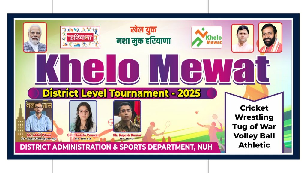जिला स्तर पर खेलो मेवात प्रतियोगिताओं का आयोजन 19 से 21 जनवरी तक।