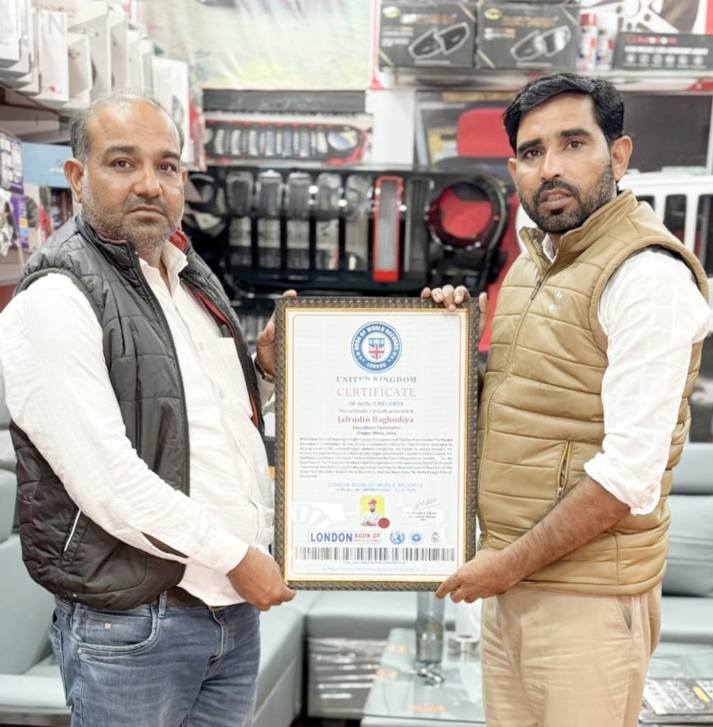 नूंह | नूंह जिले के युवा अब वैश्विक मंचों पर अपनी पहचान बना रहे हैं। फिरोजपुर झिरका के समाजसेवी जफरुद्दीन बाघोड़िया को शिक्षा सेवा में किए गए असाधारण कार्यों के लिए लंदन बुक ऑफ वर्ल्ड रिकॉर्ड्स द्वारा अंतरराष्ट्रीय रिकॉर्ड प्रमाण पत्र प्रदान किया गया है। यह सम्मान 21 नवंबर 2025 को यूनाइटेड किंगडम से जारी हुआ, जिसे क्षेत्र में ऐतिहासिक उपलब्धि माना जा रहा है। जफरुद्दीन बीते कई वर्षों से मेवात, हरियाणा और आसपास के इलाकों के आर्थिक रूप से कमजोर परिवारों के बच्चों को उच्च शिक्षा की मुख्यधारा से जोड़ने का कार्य कर रहे हैं। उन्होंने अब तक लगभग पांच हजार छात्रों को देशभर के कॉलेजों और उच्च शिक्षण संस्थानों में बिना किसी शुल्क के प्रवेश दिलाकर एक अनूठा जन आंदोलन खड़ा किया है। रिकॉर्ड जारी करने वाली समिति ने कहा कि जफरुद्दीन का मॉडल यह साबित करता है कि किसी भी क्षेत्र में शिक्षा परिवर्तन की सबसे बड़ी कुंजी है। समिति के अनुसार बच्चों को आर्थिक रुकावटों से मुक्त कर उच्च शिक्षा तक पहुंच दिलाने का जफरुद्दीन का प्रयास समाज सुधार की दिशा में एक अनोखा कार्य है। रिकॉर्ड प्रमाण पत्र अंतरराष्ट्रीय चेयरमैन डॉ अविनाश डी सकुंडे के हस्ताक्षर के साथ भेजा गया है। प्रमाणपत्र में जफरुद्दीन को युवाओं के भविष्य निर्माण में सक्रिय परिवर्तनकर्ता बताया गया है। स्थानीय समाजसेवियों, शिक्षकों, युवाओं और अभिभावकों ने इस उपलब्धि पर खुशी व्यक्त की। उनका कहना है कि जफरुद्दीन की पहल ने मेवात के हजारों घरों में शिक्षा का भरोसा और नई संभावनाएं पैदा की हैं। युवाओं को नशे, गलत गतिविधियों और भटकाव से दूर ले जाकर शिक्षा और करियर की दिशा में आगे बढ़ाने का उनका काम अब पूरे प्रदेश में एक प्रेरक उदाहरण बन चुका है। उनकी उपलब्धि को नूंह के विकास की वैश्विक पहचान के रूप में देखा जा रहा है।