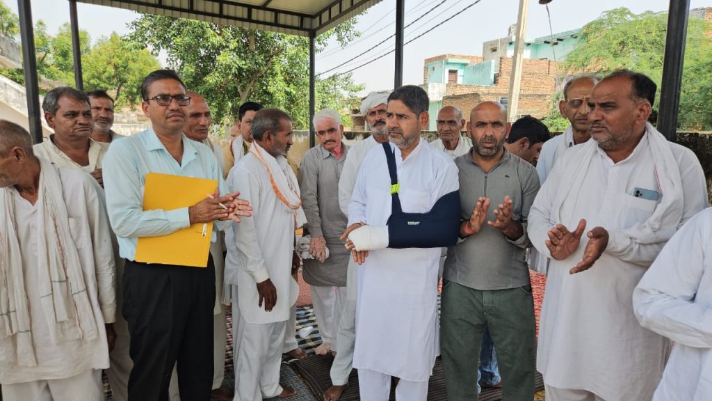 कनीना-बागोत में आयोजित सभा में हिस्सा लेते गुर्जर समाज के प्रतिनिधि।