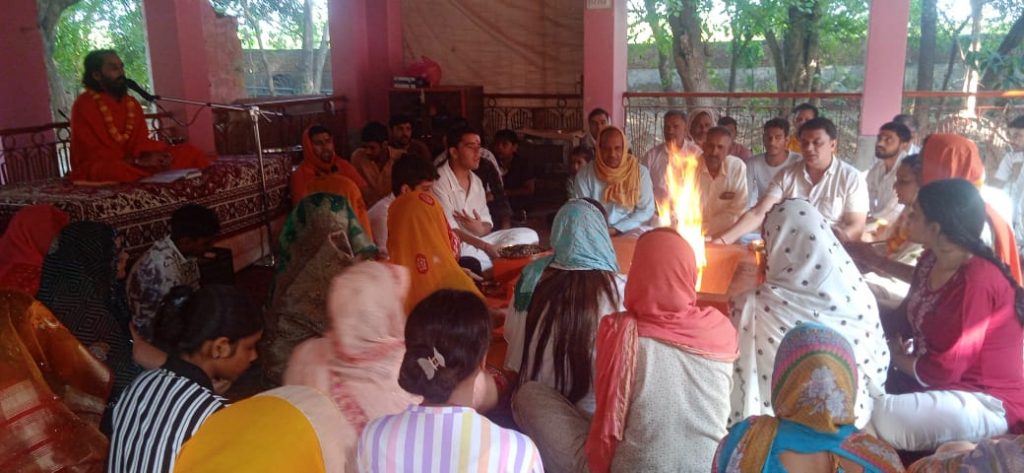 कनीना-धनौंदा में आयोजित हवन में हिस्सा लेते श्रद्धालु।