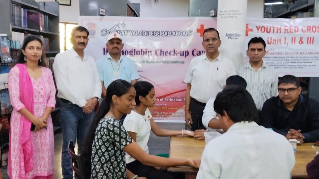 अग्रवाल कॉलेज बल्लभगढ़ में हीमोग्लोबिन जांच शिविर का आयोजन