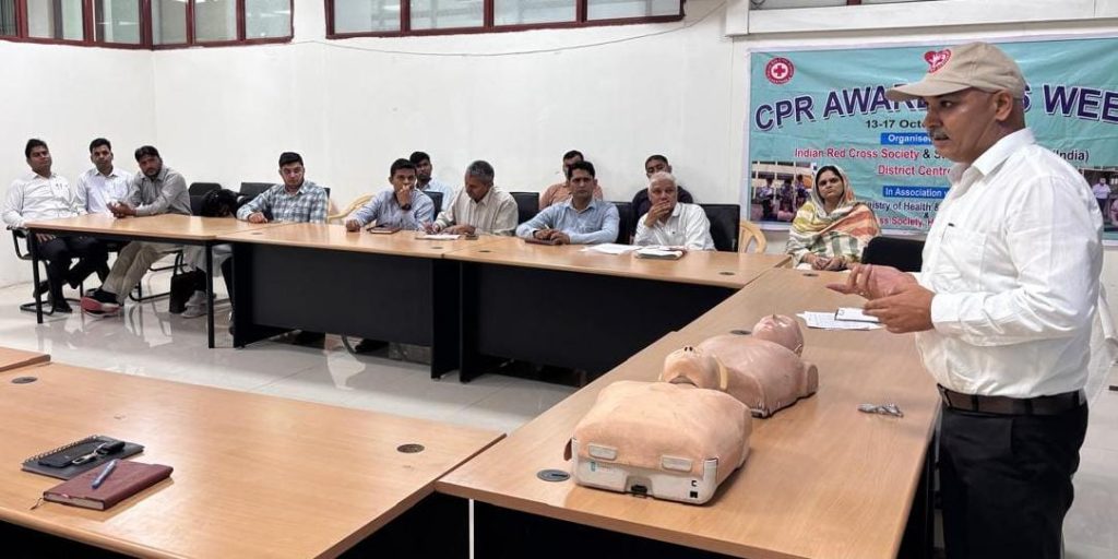 नूंह | स्वास्थ्य एवं परिवार कल्याण मंत्रालय के निर्देशन में तथा भारतीय रेडक्रॉस सोसायटी के राष्ट्रीय मुख्यालय और हरियाणा राज्य शाखा चंडीगढ़ के मार्गदर्शन में 13 से 17 अक्टूबर तक कार्डियो पल्मोनरी रिससिटेशन (सी.पी.आर.) जागरूकता सप्ताह मनाया जा रहा है।