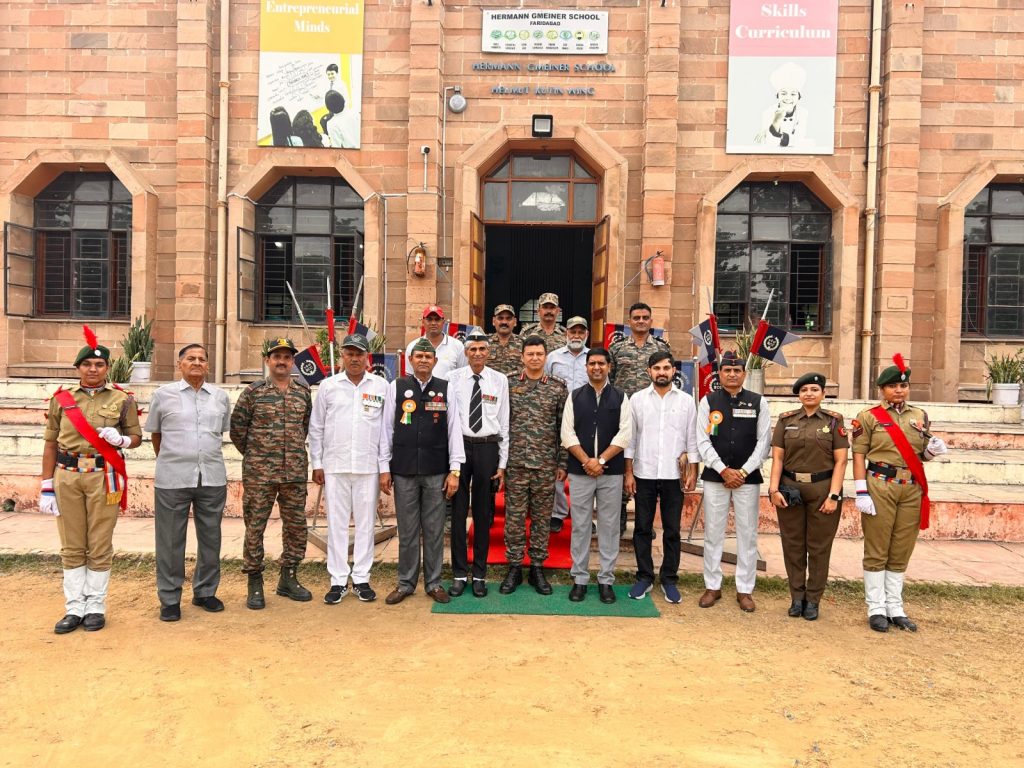 फरीदाबाद | पूर्व-सैनिकों की एक टीम (उप-मेजर माननीय कप्तान हरीश चंद, उप-मेजर माननीय कप्तान जय चंद, उप-मेजर सुरेंद्र सिंह, एससी, उप बलराम सिंह, एडीएसओ बलवंत राम और उप-मेजर राज कुमार) ने 02 अक्टूबर 2025 को फ़रीदाबाद के हरमन माइनर स्कूल में आयोजित वार्षिक प्रशिक्षण शिविर-159 में NCC कैडेट्स को प्रेरक व्याख्यान दिया।इस व्याख्यान में 571 NCC कैडेट्स और 4 हरियाणा (गर्ल्स) बटालियन NCC, नूह के 17 ANOs/CTOs ने भाग लिया।