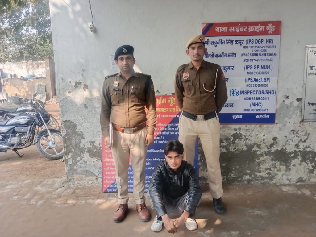 नूंह साइबर थाना पुलिस ने ऑनलाइन फ्रॉड करने वाले आरोपी को दबोचा, मोबाइल-सिम व मोटरसाइकिल बरामद