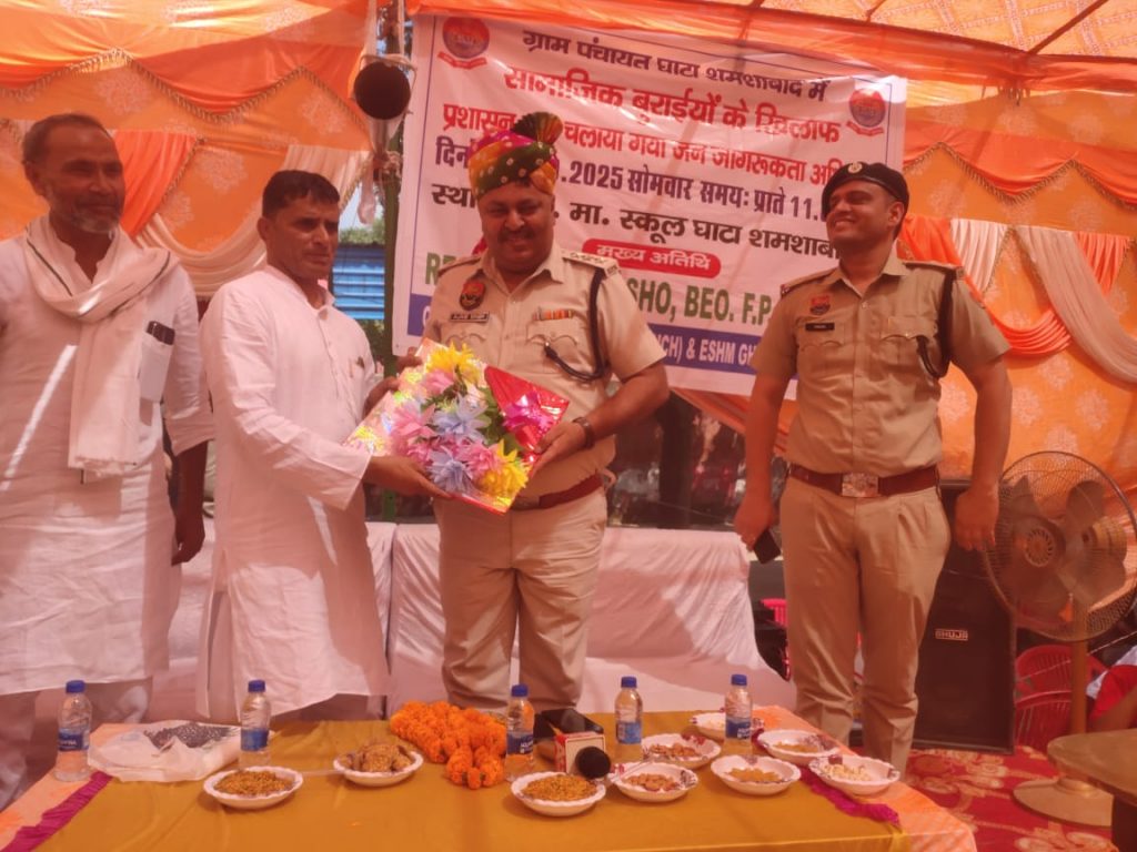 सेवा पखवाड़े के तहत नूंह पुलिस का जागरूकता अभियान लगातार जारी – गांव घाटा शमशाबाद में उप-पुलिस अधीक्षक फिरोजपुर झिरका ने ग्रामीणों को नशा मुक्ति, साइबर सुरक्षा और यातायात नियमों के प्रति किया जागरूक ।