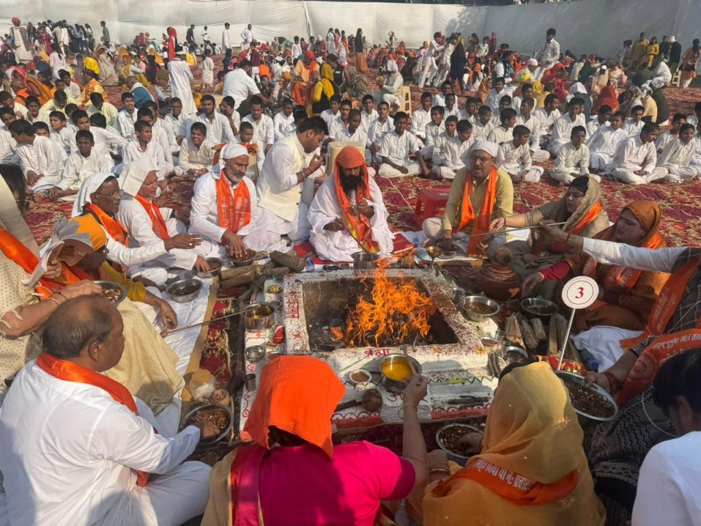 कनीना-24 कुंडीय महायज्ञ में आहुति डालते योगीराज ओमप्रकाश व अन्य।