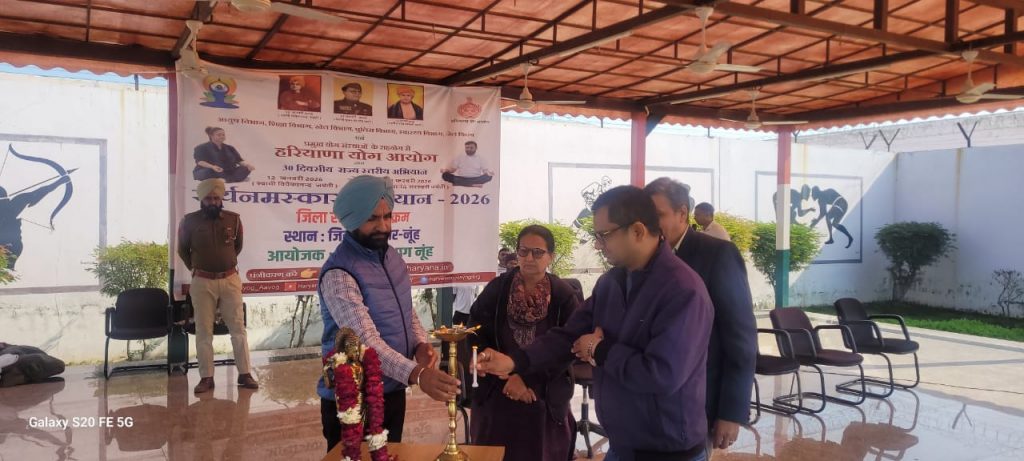 नूंह | हरियाणा योग आयोग एवं आयुष विभाग, हरियाणा के तत्वावधान में स्वामी विवेकानंद की जयंती (राष्ट्रीय युवा दिवस) के अवसर पर आयुष विभाग नूंह द्वारा जिला आयुर्वेदिक अधिकारी डॉ. यशबीर गहलावत के मार्गदर्शन में जिला स्तर पर सूर्यनमस्कार कार्यक्रमों का आयोजन किया गया।