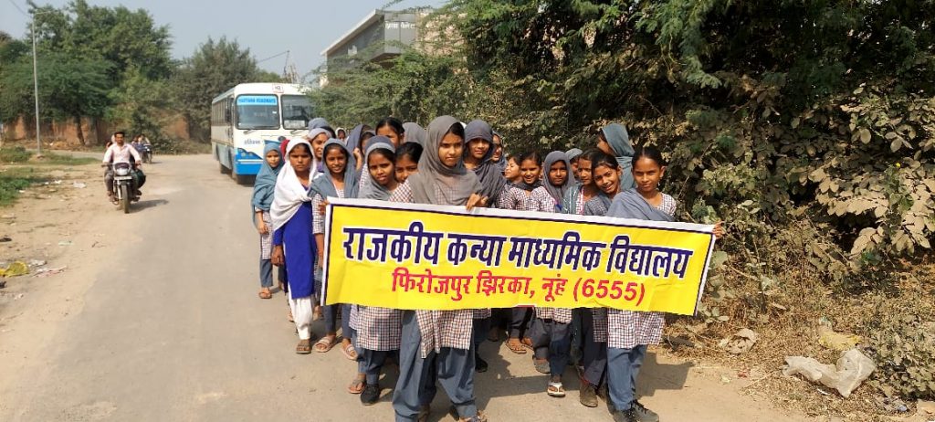 नूंह | राजकीय कन्या माध्यमिक विद्यालय फिरोजपुर झिरका पंजाबी ग्राउंड की छात्राओं ने आज प्रातः काल नशा मुक्त भारत अभियान के अंतर्गत रैली निकालकर युवाओं को नशे से बचने का संदेश दिया । विद्यालय प्रभारी डॉक्टर किशोर जावलिया ने बताया कि देश के युवा गलत संगत और नशे में पड़कर अपना भविष्य खराब कर रहे हैं । नशा मनुष्य को जानवर बना देता है, जिस कारण आवेश में आकर मनुष्य गलत कार्य और अपराध कर बैठते हैं जिसका खामियाजा खुद उनको व उनके पूरे परिवार को भुगतना पड़ता है । छात्राओं ने युवाओं व स्थानीय लोगों से अपील की की नशा छोड़कर एक जिम्मेदार नागरिक बने और अपने-अपने परिवार के भविष्य के बारे में सोचिए । इस अवसर पर अशोक कुमार पीटीआई ने रैली की अगुवाई की ।