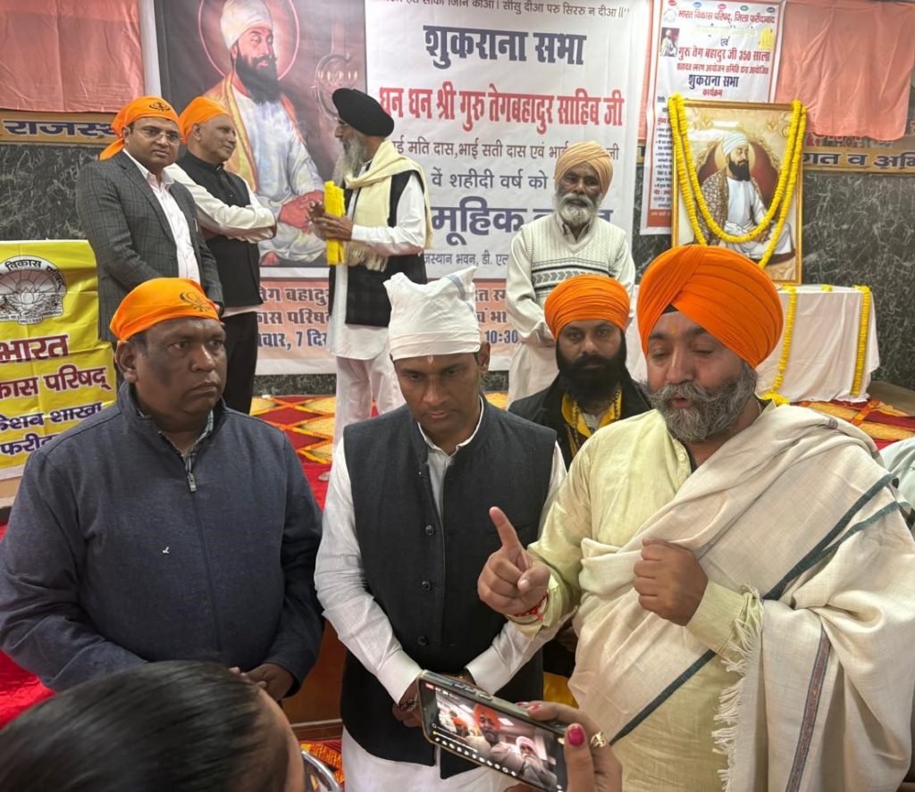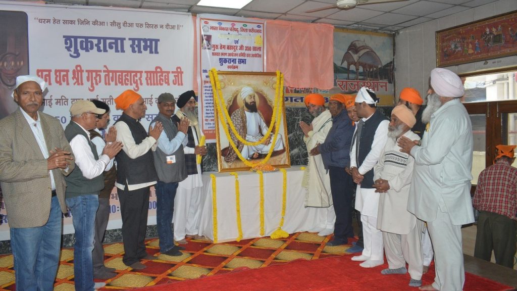 फरीदाबाद। गुरु तेग बहादुर साहिब जी के 350वें शहीदी वर्ष पर सामूहिक नमन करने के लिए शुकराना सभा का आयोजन सेक्टर 10 स्थित राजस्थान भवन मैं किया गया।