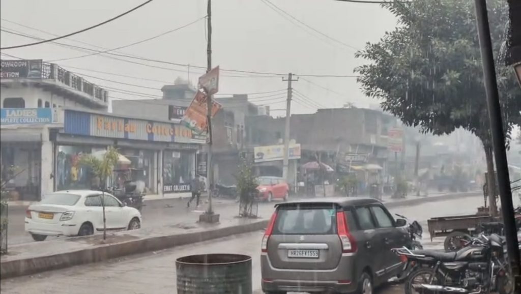 नूंह में मौसम ने ली अचानक करवट, तेज बारिश से किसानों के चेहरे खिले।
