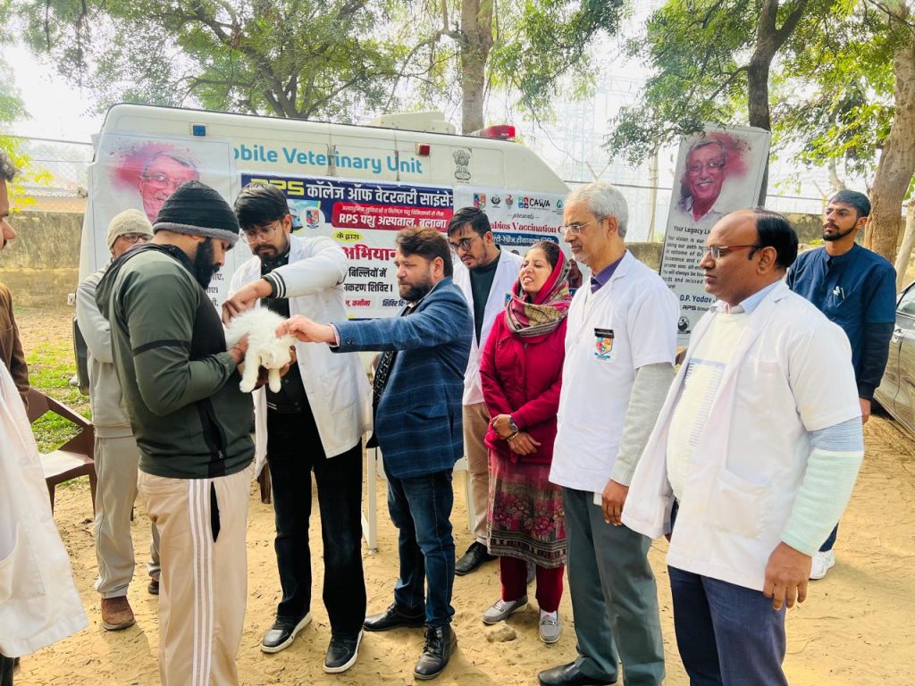 कनीना | कनीना क्षेत्र के जानवर पालकों के लिए अच्छी खबर है। आरपीएस कॉलेज ऑफ वेटरनरी साइंस की ओर से नगर पालिका कनीना एवं पशुपालन विभाग के सहयोग से जीरो रेबीज अभियान का शुभारंभ किया गया है। जिसका लाभ जानवर पालक आसानी से उठा सकते हैं।  इस बारे में नगरपालिका कनीना की चेयरपर्सन डॉ रिम्पी लोढा ने बताया कि शुक्रवार को राजकीय पशु चिकित्सालय कनीना में विशेष शिविर का आयोजन कर अभियान का शुभारंभ किया गया। जिसमें टीम की ओर से पालतू कुत्तों का टीकाकरण किया गया। उन्होंने बताया कि सभी वार्ड पार्षदों व आमजन के सहयोग से अभियान को सफल बनाया जाएगा। नगर में घूमने वाले आवारा व बेसहारा कुत्तों का भी टीकाकरण किया जाएगा। उन्होंने कुत्ता-बिल्ली पालकों से टीकाकरण करने में सहयोग की अपील की है। उनकी ओर से शुरू किए गए अभियान के अंतर्गत जानवरों को निशुल्क टीकाकरण किया जा रहा है। उन्होंने कहा कि जानवरों के टीकाकरण के लिए वार्ड वाइज टीम का गठन किया गया है जो शीघ्र ही इस कार्य को पूरा करेगी। इस मौके पर पशुपालन विभाग के चिकित्सक पवन कांगड़ा सहित आरपीएस कॉलेज के विशेषज्ञ उपस्थित थे।
