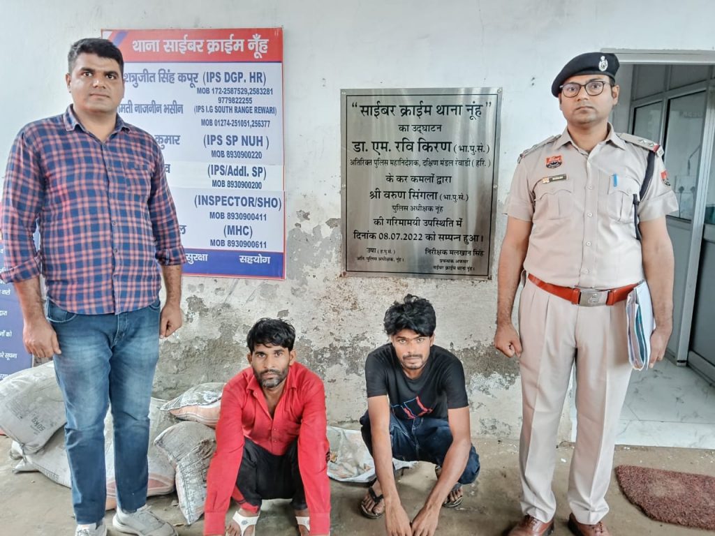नूंह | नूंह साइबर थाना नूंह पुलिस ने नकली सोने की ईंट बेचकर लोगों से ठगी करने वाले गिरोह के दो शातिर ठगों को गिरफ्तार कर बड़ा खुलासा किया है। पुलिस ने आरोपियों के कब्जे से फर्जी सिम कार्ड, मोबाइल फोन, नकली सोने की ईंट के टुकड़े, हथौड़ी और छैनी सहित कई आपत्तिजनक सामग्री बरामद की है। गिरफ्तार आरोपियों की पहचान इब्बन पुत्र कासम निवासी तिरवाड़ा थाना बिछौर तथा तौफिक पुत्र महमूद निवासी सालाहेड़ी थाना नूंह के रूप में हुई है।