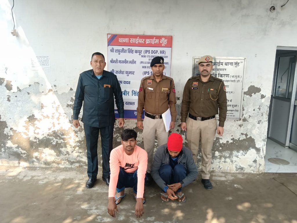 नूंह | नूंह जिला पुलिस ने साइबर अपराध के खिलाफ सफलता हासिल करते हुए दो शातिर साइबर अपराधियों को गिरफ्तार किया है। यह कार्रवाई पुलिस अधीक्षक नूंह राजेश कुमार के निर्देशानुसार साइबर अपराध पर अंकुश लगाने के लिए चलाए जा रहे विशेष अभियान के तहत की गई है।