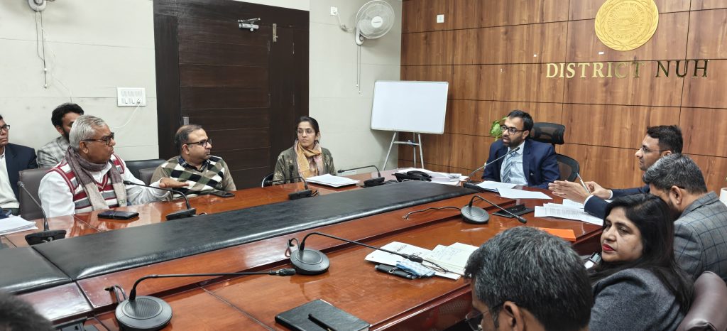 नूंह | उपायुक्त एवं अध्यक्ष मेवात विकास प्राधिकरण अखिल पिलानी ने बताया कि जिला प्रशासन द्वारा एमडीए एक्शन प्लान 2025-26 के अंतर्गत स्वास्थ्य एवं शिक्षा क्षेत्र में आधारभूत ढांचे को सुदृढ़ करने के लिए व्यापक कार्ययोजना तैयार कर प्रभावी रूप से क्रियान्वित की जा रही है। इस योजना का उद्देश्य आमजन को बेहतर स्वास्थ्य सेवाएं तथा गुणवत्तापूर्ण शैक्षणिक सुविधाएं उपलब्ध कराना है। उपायुक्त शुक्रवार को लघु सचिवालय स्थित कॉन्फ्रेंस हॉल में मेवात विकास प्राधिकरण के अंतर्गत किए जा रहे कार्यों की समीक्षात्मक बैठक को संबोधित कर रहे थे।