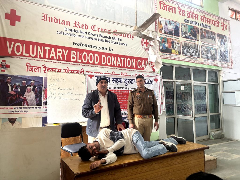 सेमिनार का आयोजन जिला रेड क्रॉस सोसायटी नूंह के सचिव तथा ट्रैफिक पुलिस नूंह के एसएचओ सुखबीर सिंह के मार्गदर्शन में किया गया।