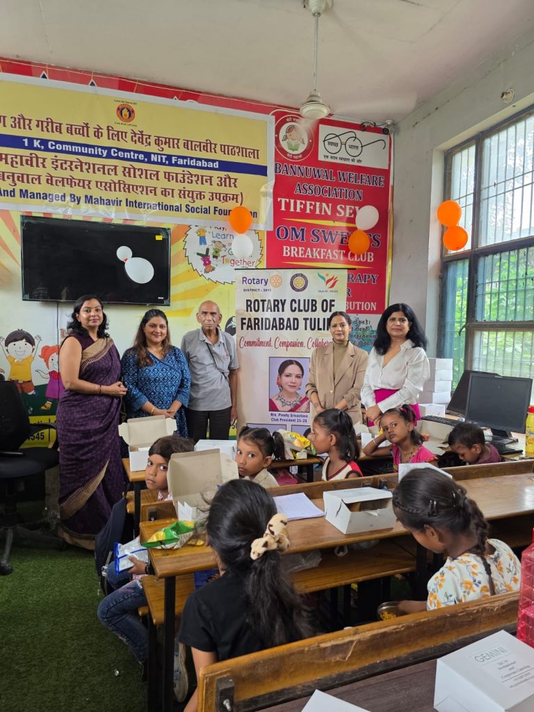 फरीदाबाद। महावीर इंटरनेशनल सोशल फाउंडेशन द्वारा संचालित देवेन्द्र कुमार बालवीर पाठशाला के प्रांगण में भारत के राष्ट्रपति सर्व पल्ली राधा कृष्ण के जन्म दिवस पर विश्व में अध्यापक दिवस मनाया जाता है। श्री सर्वपल्ली राधा कृष्ण स्वयं एक शिक्षक थे, जीवन विज्ञान के दार्शनिक थे, अतः उनकी स्मृति में शिक्षक दिवस प्रति वर्ष 5 सितंबर को मनाया जाता है, उसी उपलक्ष्य में आज देवेन्द्र कुमार बालवीर पाठशाला में भी रोटरी क्लब ट्यूलिप के सहयोग से शिक्षक दिवस मनाया गया। इस अवसर पर पाठशाला की तीन लड़कियों ने शिक्षक बन कर स्कूल के बच्चों को पढ़ाया । इन तीनों को पुरस्कार देकर सम्मान किया गया। रोटरी क्लब ट्यूलिप की एक सदस्या मीनाक्षी शर्मा जो स्पीकर हैं, मोटीवेटर हैं ने बच्चों को खेल खेल के साथ बहुत अच्छी अच्छी बातें सिखाई, कैसे रहना, क्या खाना, साफ रहना, बड़ों का सम्मान करना आदि ।